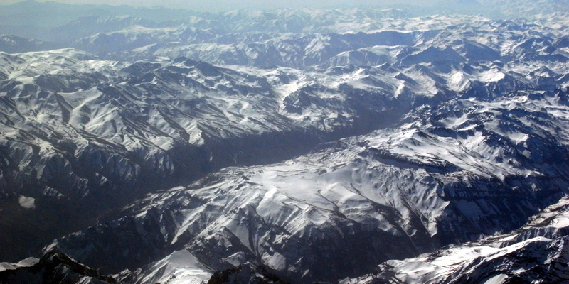 山愈来愈高。我又看到了壮观的冰原、冰川和峡谷。从近万米的飞机上看上去似乎都伸手可及。